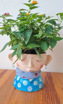 An diesem Samstag bauen wir ein dekoratives Blumengefäß mit Gesicht.